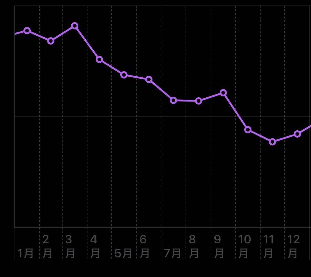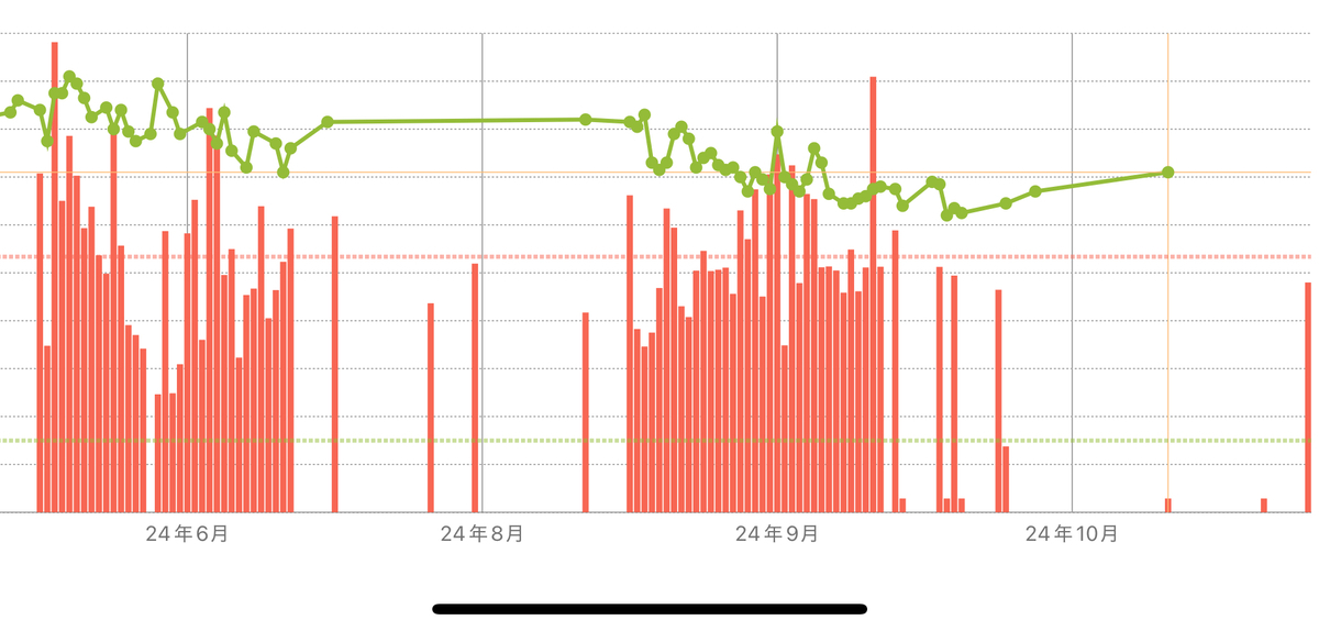 また、このトレンドを追って思い出していくと、太っていく時期は心理的に余裕がない時が多かったです!この示唆は、並べてみて初めて気づきました。